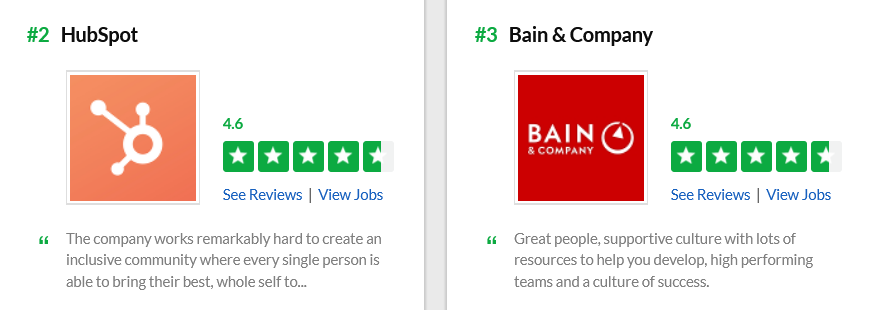 今年榜单上排名第一的是英伟达,其次是HubSpot,贝恩公司排名第三。