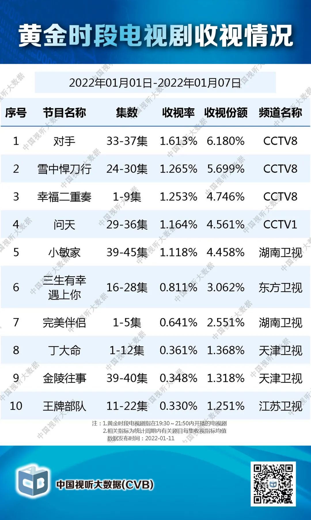 - 中国视听大数据发布:2022年4月2日-4月8日黄金时段电视剧收视情况