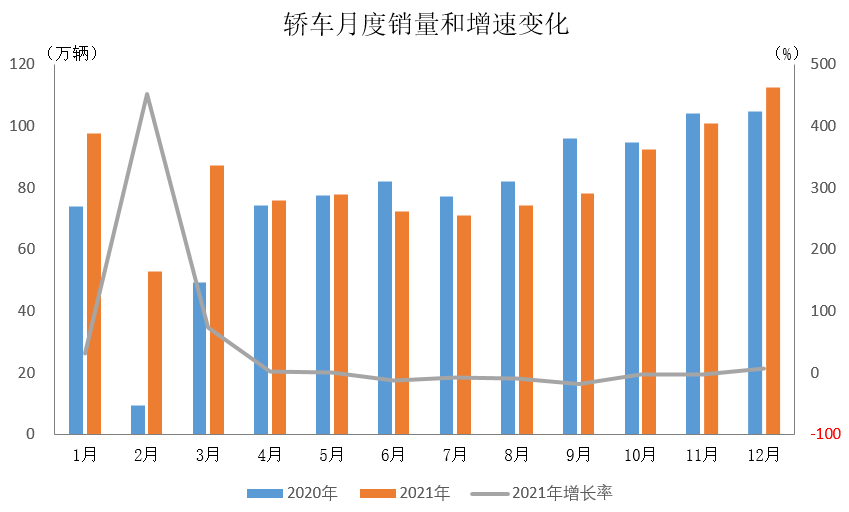 2021 年,在乘用车主要品种中,与上年同期相比,四大类乘用车品种产销保持小幅增长,除轿车外,增速均比 1-11 月继续回落。