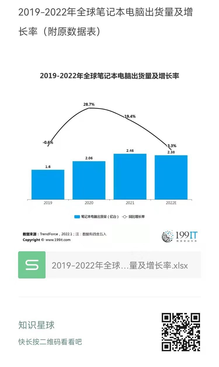 - 2019-2022年全球笔记本电脑出货量及增长率(附原数据表)