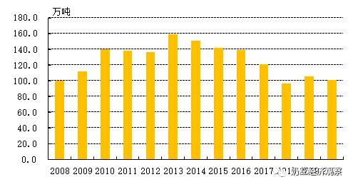 注:规模以上乳品企业(年销售额 2000 万元及以上)的产量统计,每年企业数量不一样。