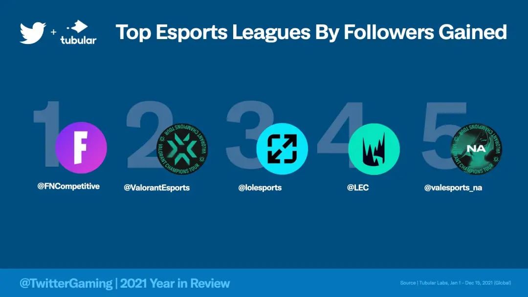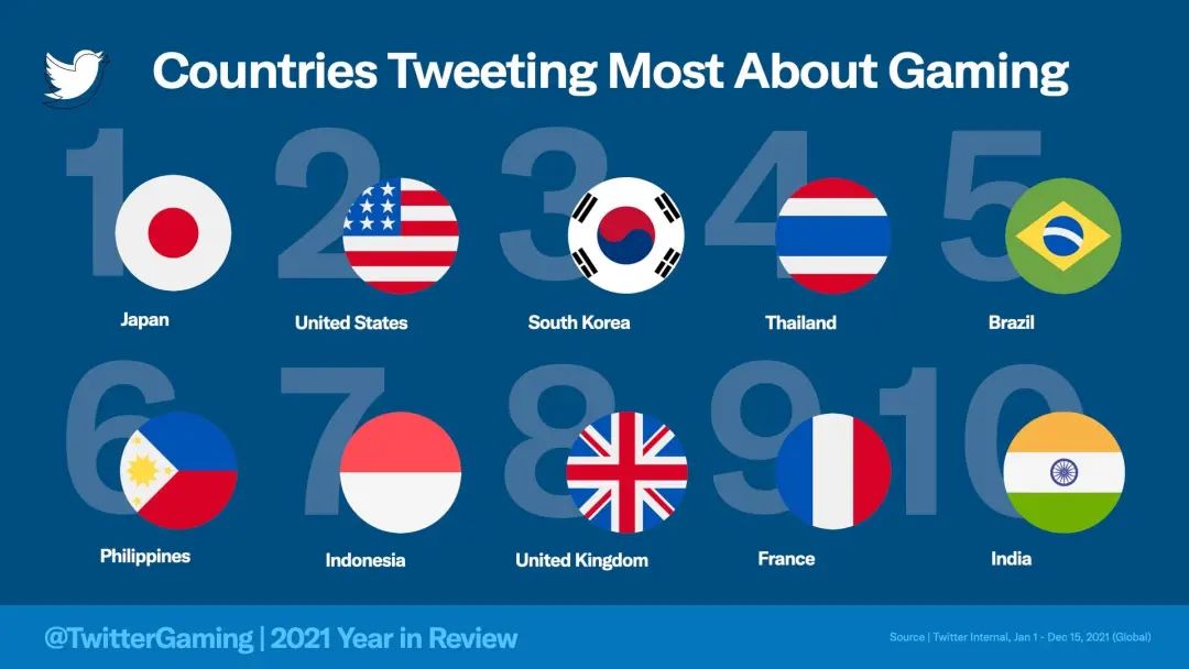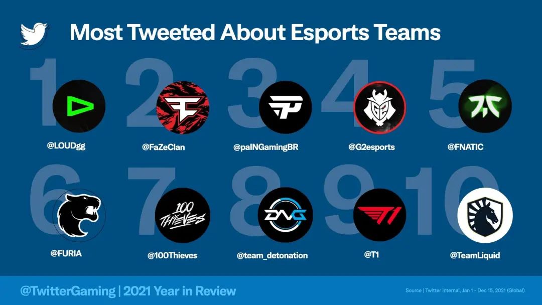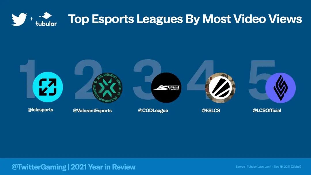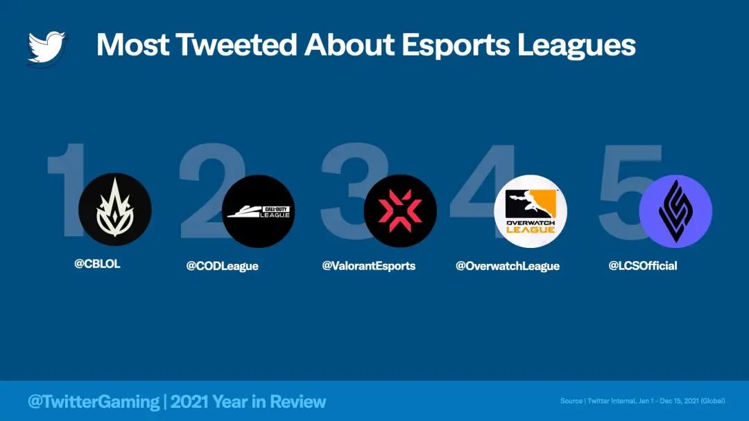 从发布的信息来看,2021 年 Twitter 讨论度最高的游戏为国产手游《原神》,而 2020 年的榜首《集合啦!动物森友会》则位列第 6;讨论度最高的前十款游戏与 2020 年相比变动不大,只新增了两款游戏,分别是排名第 8 位的《我的世界》和第 9 位的《世界计划多彩舞台!feat.初音未来》。除此之外,在讨论度较高的电竞赛事统计里,除了呼声最高的《英雄联盟》,《使命召唤》和《无畏契约》也广受欢迎。