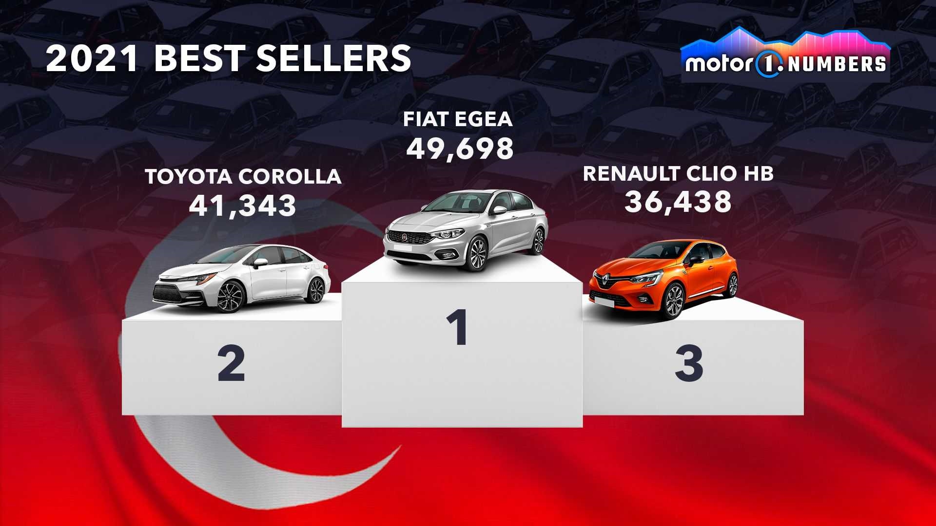 在土耳其,轿车最受欢迎,菲亚特EGEA、丰田卡罗拉和雷诺Clio HB成为了销量最高的车型。