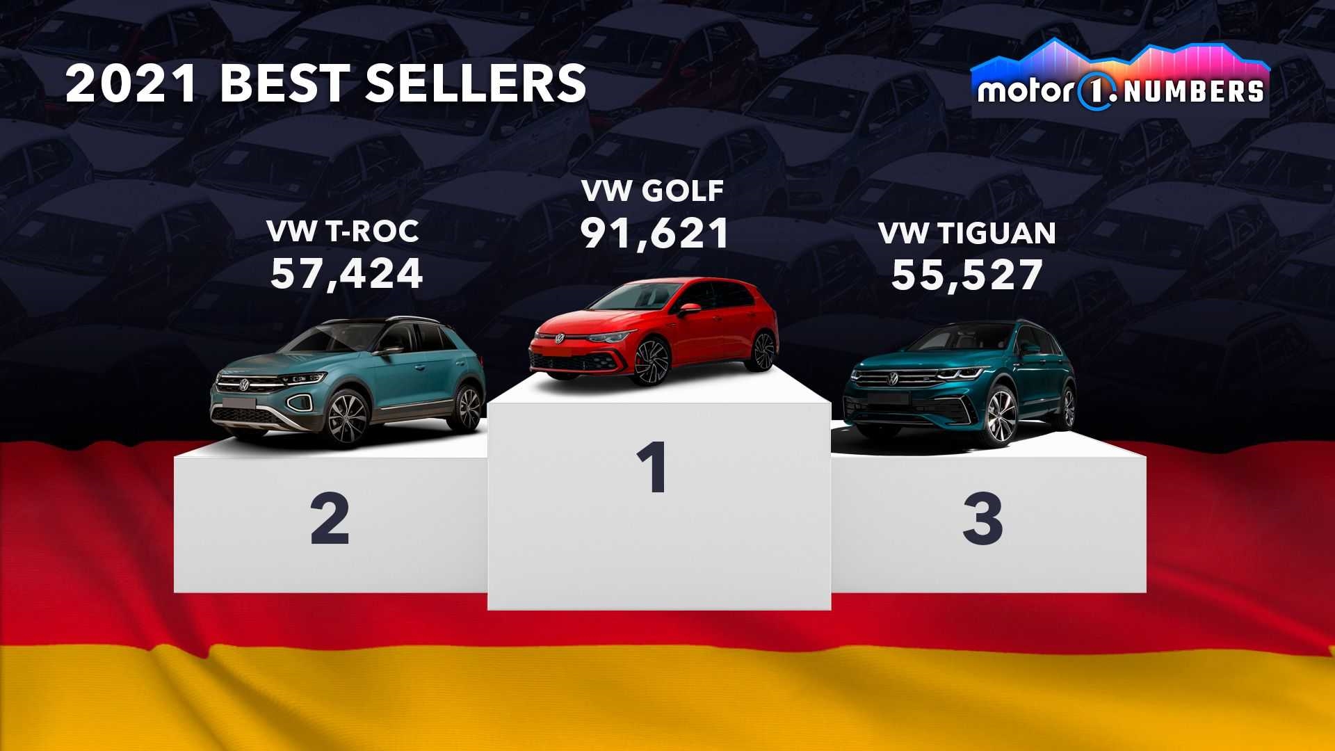 在德国,大众依旧是当地汽车市场的霸主,全新一代高尔夫上市后竞争力惊人,凭借91621台的成绩夺得了销冠,而大众T-Roc(国内探歌)和Tiguan(途观)以5.7万和5.5万的销量位居第二、第三名。
