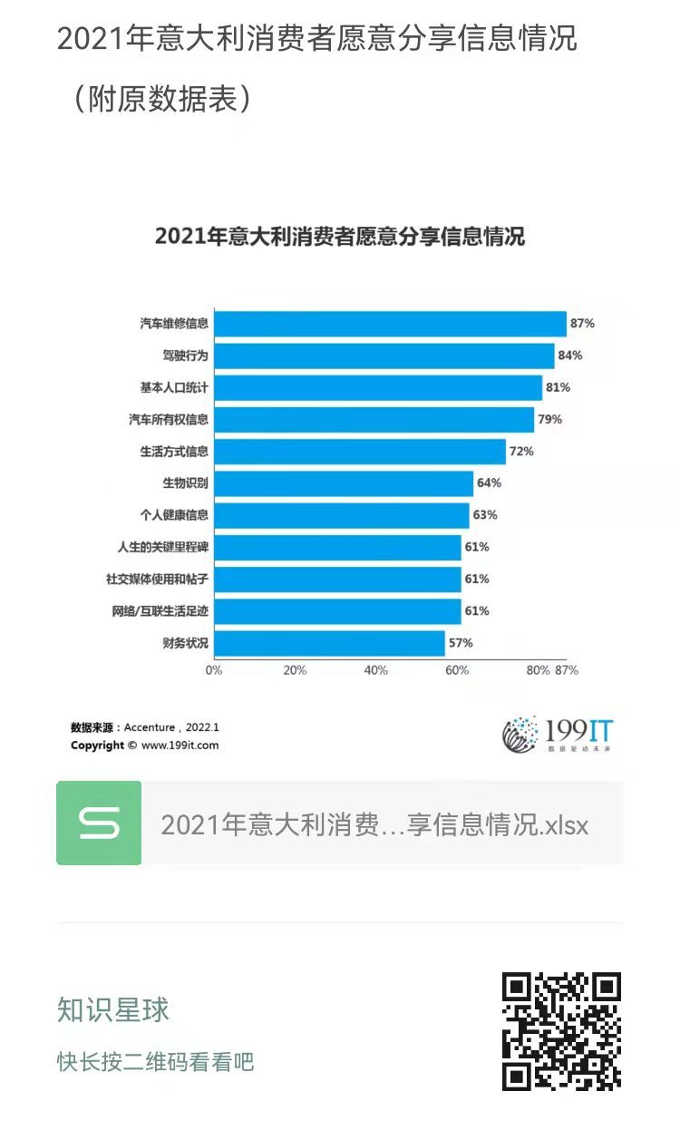 2021年意大利消费者愿意分享信息情况(附原数据表) ​​​​