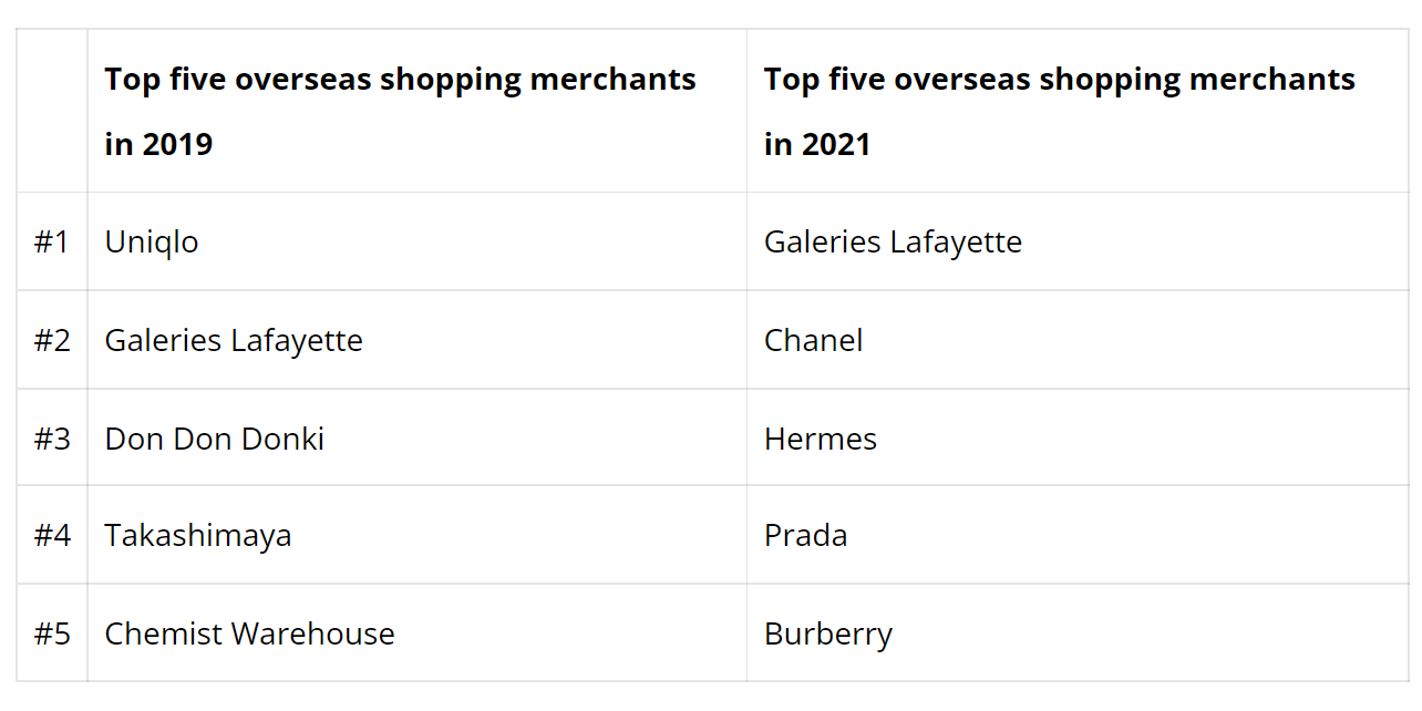 在海外购物方面,新加坡人不惜一切代价。“奢侈购物”是大部分旅行日程的优先事项,这解释了为什么香奈儿、爱马仕和普拉达等高端品牌占新加坡人海外购物支出的大部分。