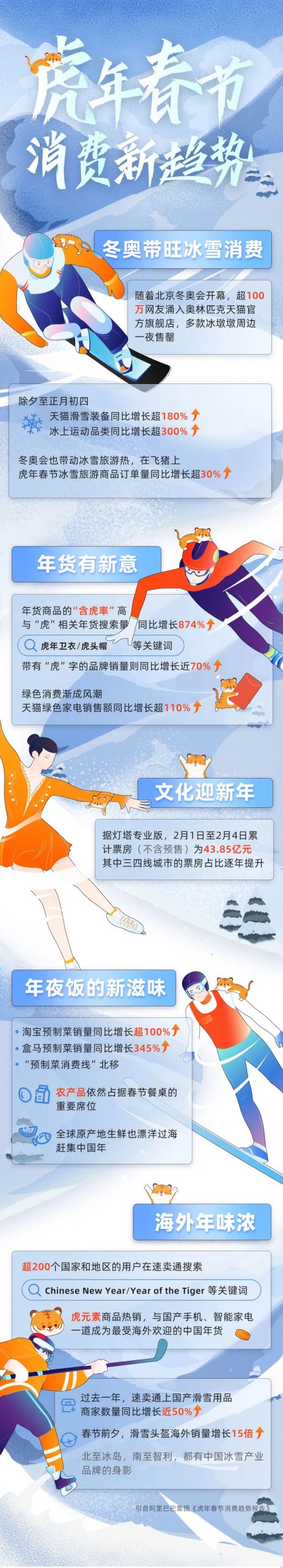 春节逢冬奥,数字化催生了许多新年味:餐饮商家和老字号的预制年菜送上消费者餐桌,全国各地的年货夕发朝至,制造业产地仓按需直供,百年奥运全面上云,国内冰雪品牌乘船出海,都是数字技术与实体产业结合迸发的新火花。数字技术走深向实,将带来更多新消费体验、新产业机遇。