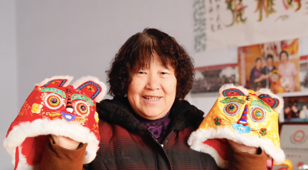 山西虎头帽卖家展示手工制品。年货节期间,她的生意同比增长了3倍。