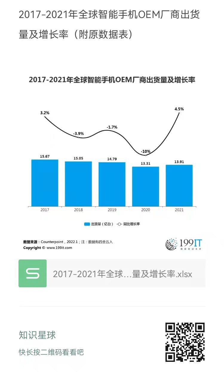 - 2021年Q4全球主要智能手机OEM厂商出货量及增长率(附原数据表)