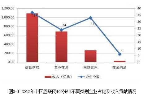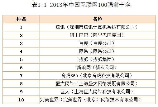 为了科学、客观评价互联网企业发展现状,认识、理解互联网站发展的特点和规律,有效探索互联网行业发展趋势,中国互联网协会本着”客观、真实、公正、公益”的原则,组织专家和技术团队共同完成了2013年度”中国互联网100强”报告。该报告对互联网企业年度营收、在线业务(以网站为主)访问量和访问速度体验三项指标的数据进行统计分析,对互联网企业发展状况和网站价值影响力进行了综合评价。