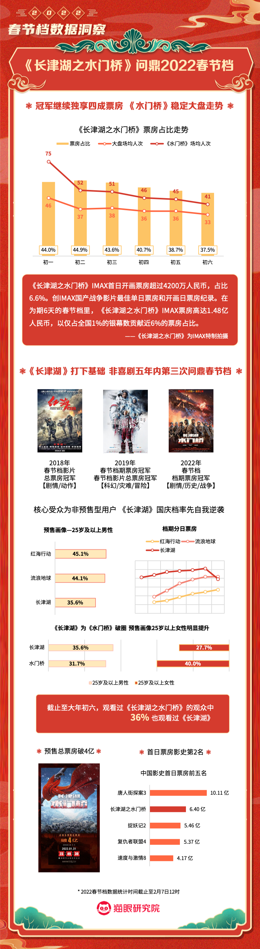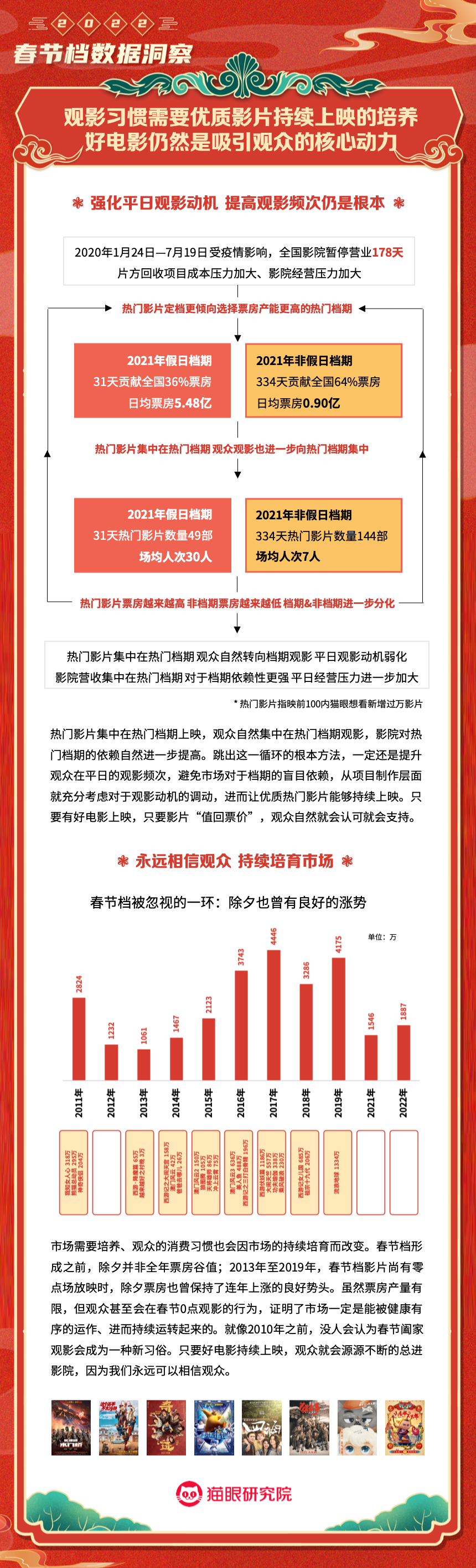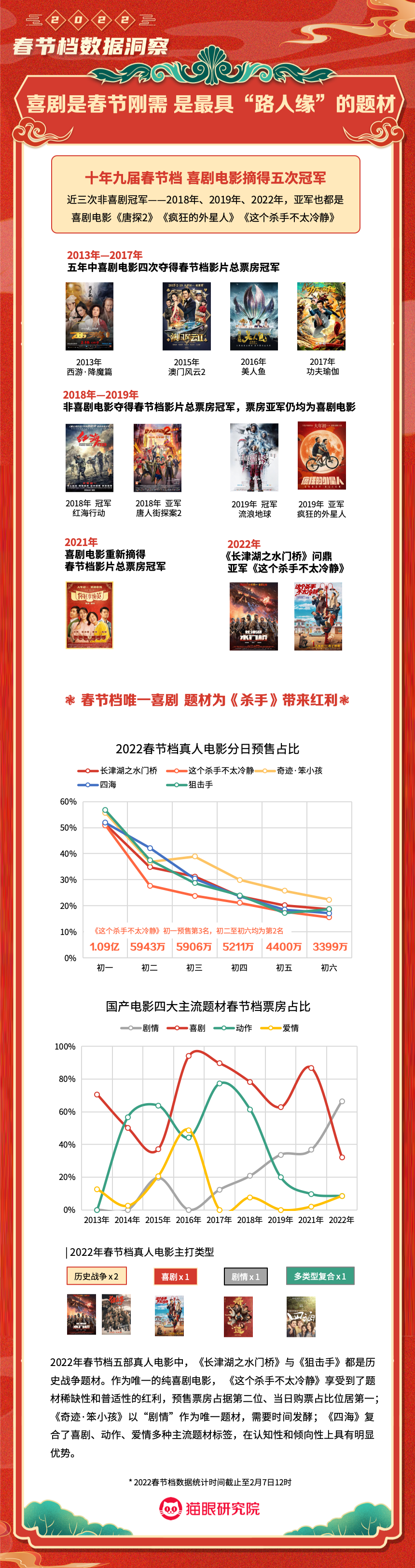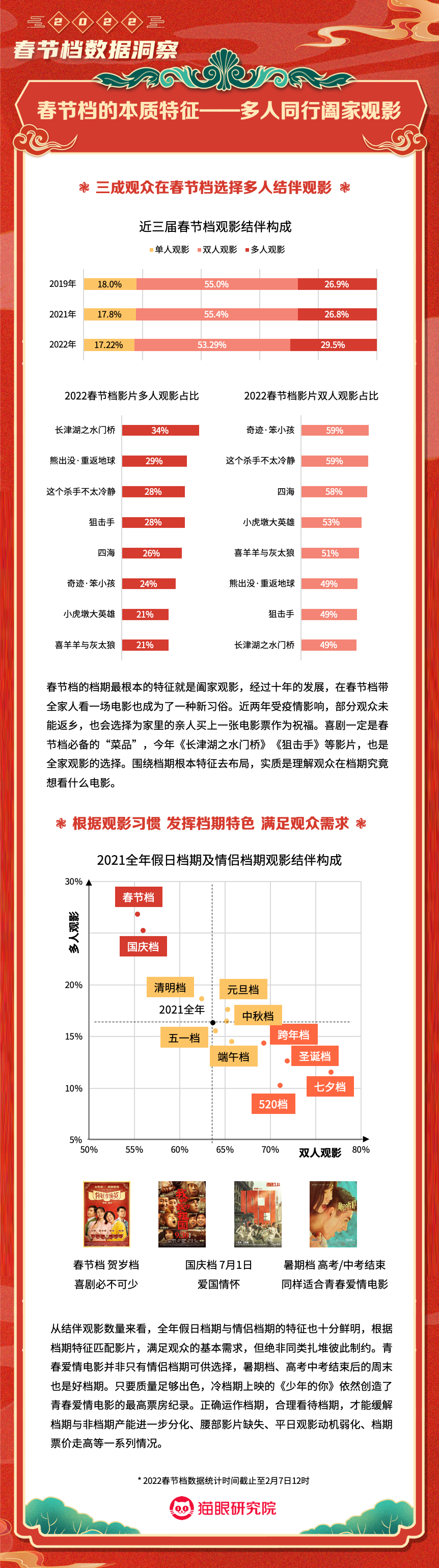 猫眼研究院:2022春节档数据洞察 更多阅读:猫眼研究院:2022年总票房超270亿猫眼研究院:2022年国庆档总票房破8亿猫眼研究院:2022年中秋节票房破1.4亿猫眼研究院:2022国庆档总票房14.9亿猫眼研究院:2022年短剧热度榜猫眼研究院:2022暑期档电影数据洞察猫眼研究院:2022年度大盘票房破百亿猫眼研究院:春节档新片总票房(含点映)破亿!猫眼研究院:2021剧集市场数据洞察猫眼研究院:2022国庆档数据洞察猫眼研究院:2022年贺岁档票房破6亿猫眼研究院:2023年度票房破250亿猫眼研究院:2023年六一档票房1.32亿猫眼研究院:2023年5月猫眼「网络剧」热度榜猫眼研究院:2023年5月猫眼「电视剧」热度榜
