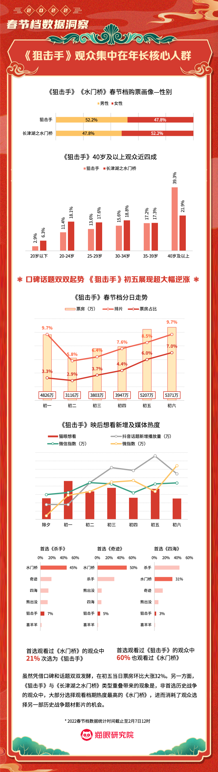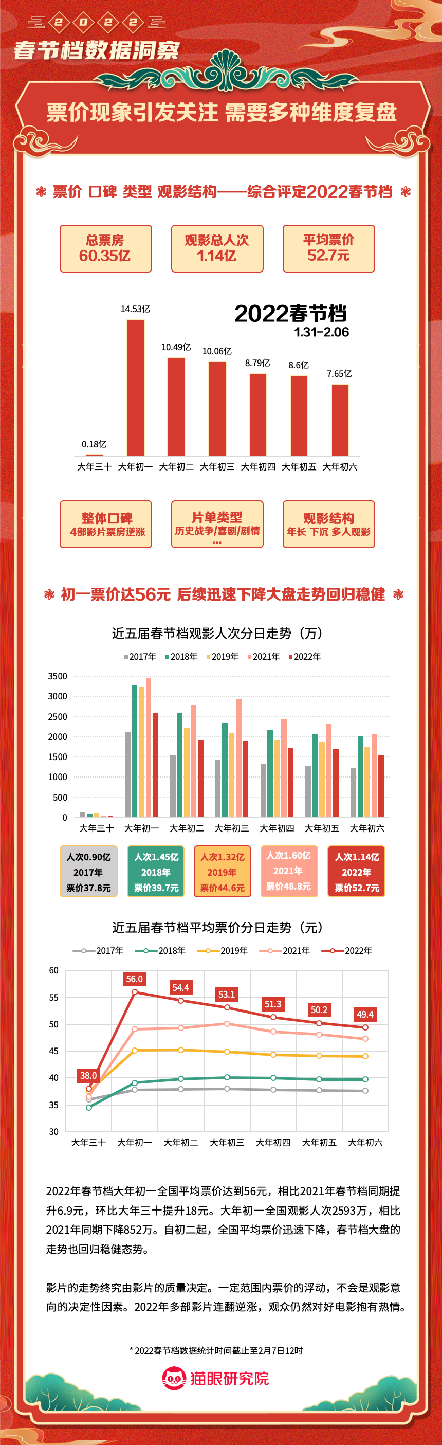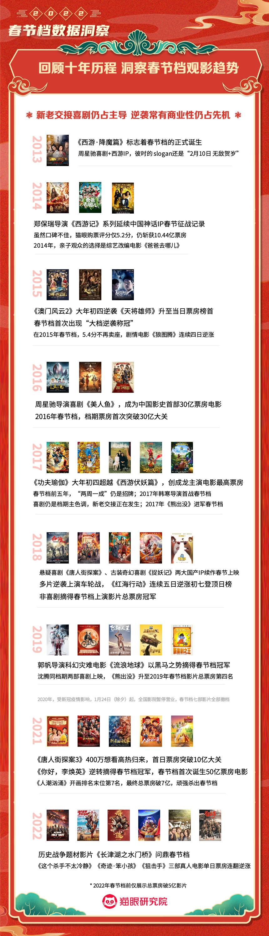 猫眼研究院:2022春节档数据洞察 更多阅读:猫眼研究院:2022年总票房超270亿猫眼研究院:2022年国庆档总票房破8亿猫眼研究院:2022年中秋节票房破1.4亿猫眼研究院:2022国庆档总票房14.9亿猫眼研究院:2022年短剧热度榜猫眼研究院:2022暑期档电影数据洞察猫眼研究院:2022年度大盘票房破百亿猫眼研究院:春节档新片总票房(含点映)破亿!猫眼研究院:2021剧集市场数据洞察猫眼研究院:2022国庆档数据洞察猫眼研究院:2022年贺岁档票房破6亿猫眼研究院:2023年度票房破250亿猫眼研究院:2023年六一档票房1.32亿猫眼研究院:2023年5月猫眼「网络剧」热度榜猫眼研究院:2023年5月猫眼「电视剧」热度榜
