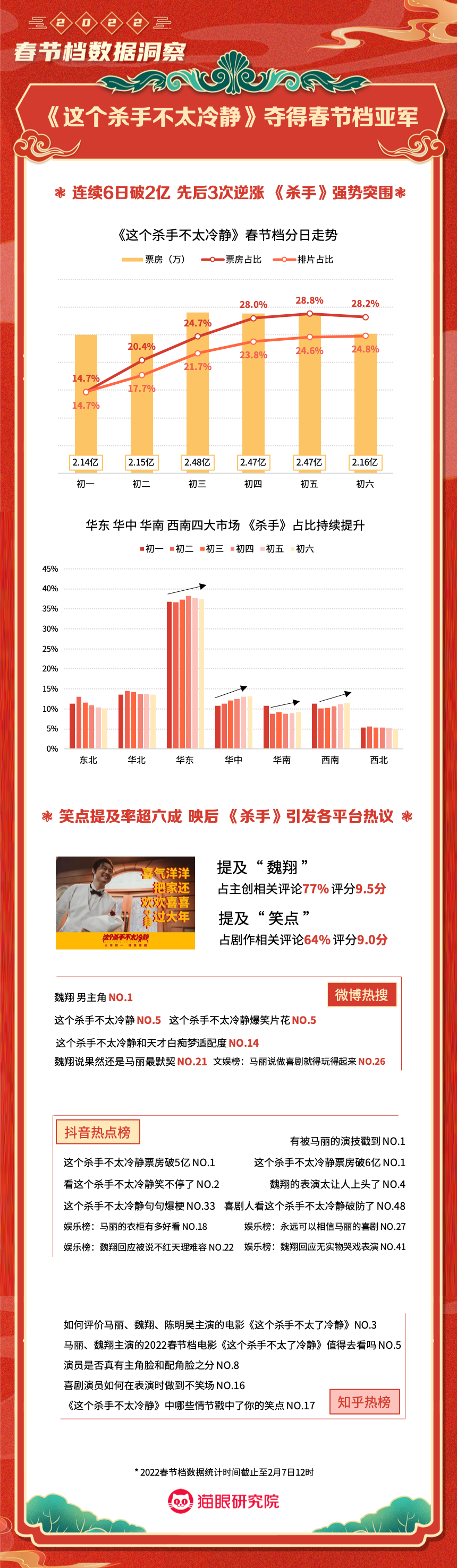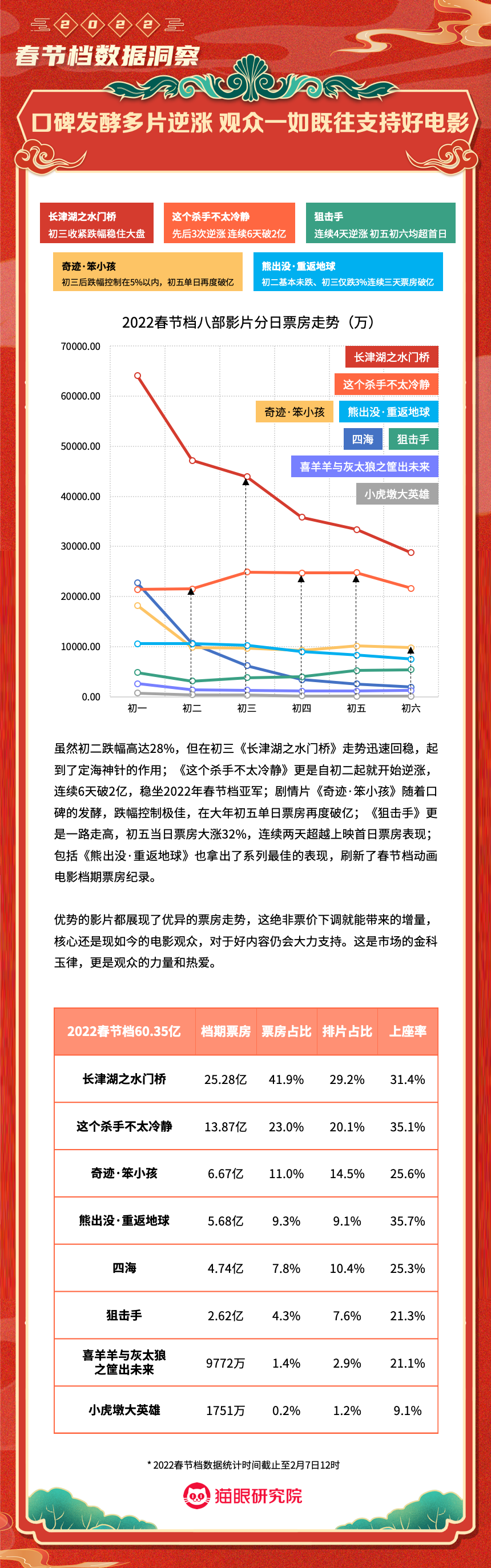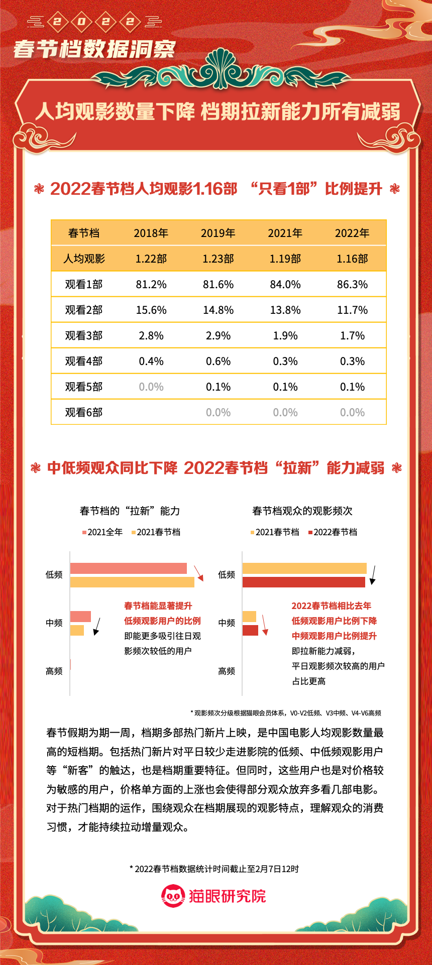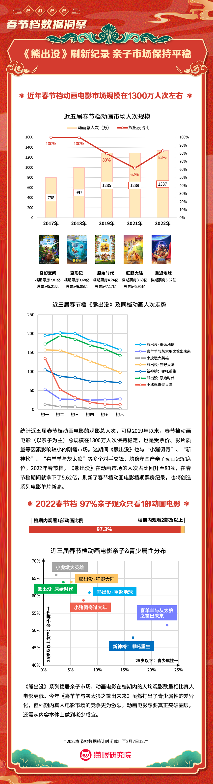 猫眼研究院:2022春节档数据洞察 更多阅读:猫眼研究院:2022年总票房超270亿猫眼研究院:2022年国庆档总票房破8亿猫眼研究院:2022年中秋节票房破1.4亿猫眼研究院:2022国庆档总票房14.9亿猫眼研究院:2022年短剧热度榜猫眼研究院:2022暑期档电影数据洞察猫眼研究院:2022年度大盘票房破百亿猫眼研究院:春节档新片总票房(含点映)破亿!猫眼研究院:2021剧集市场数据洞察猫眼研究院:2022国庆档数据洞察猫眼研究院:2022年贺岁档票房破6亿猫眼研究院:2023年度票房破250亿猫眼研究院:2023年六一档票房1.32亿猫眼研究院:2023年5月猫眼「网络剧」热度榜猫眼研究院:2023年5月猫眼「电视剧」热度榜