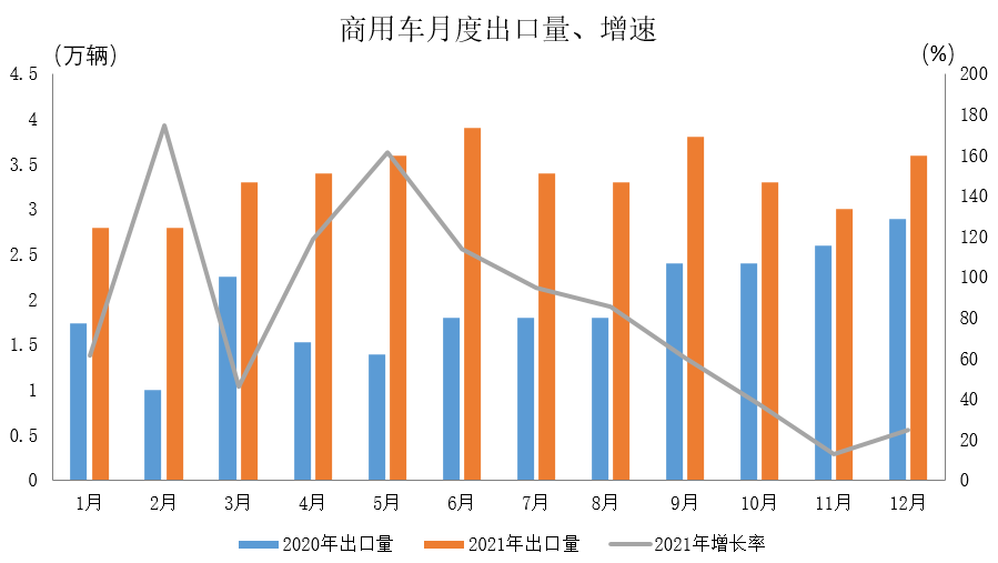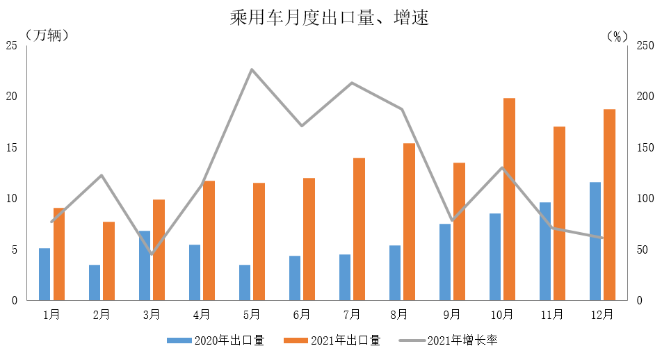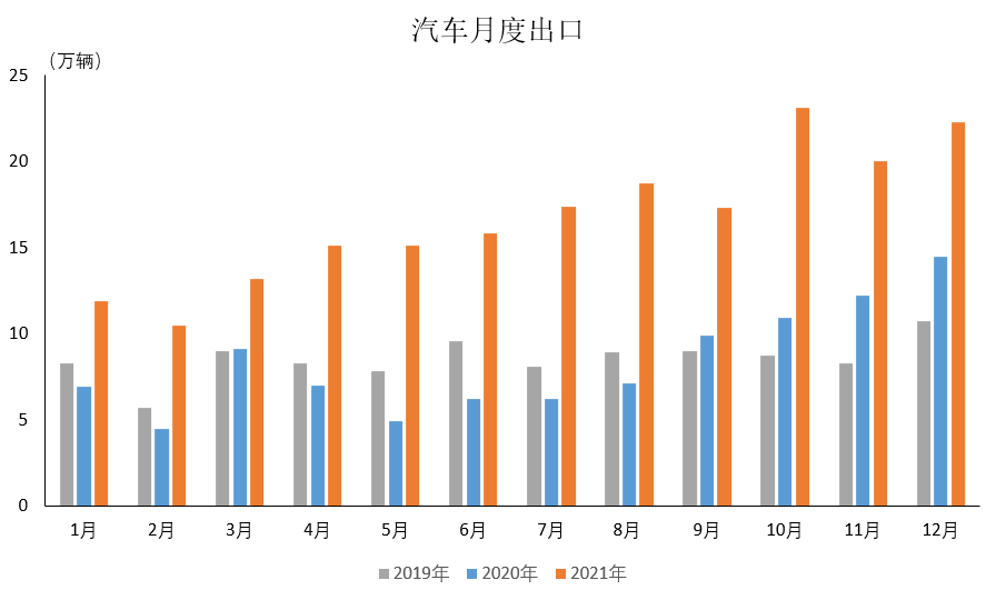 2021 年 12 月,汽车企业出口 22.3 万辆,环比增长 11.4%,同比增长 54.0%。