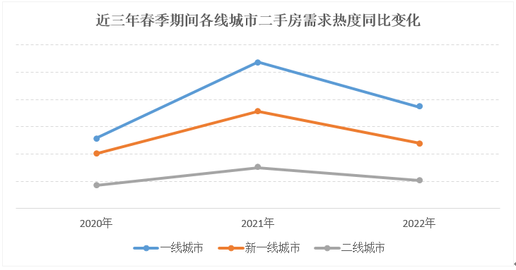58 安居客房产研究院统计数据显示:2022 年春节期间全国重点城市二手房购房需求热度环比减少 31%,其中一线城市同比下跌 30%,新一线城市同比下跌 33%,二线城市同比下跌 31%。