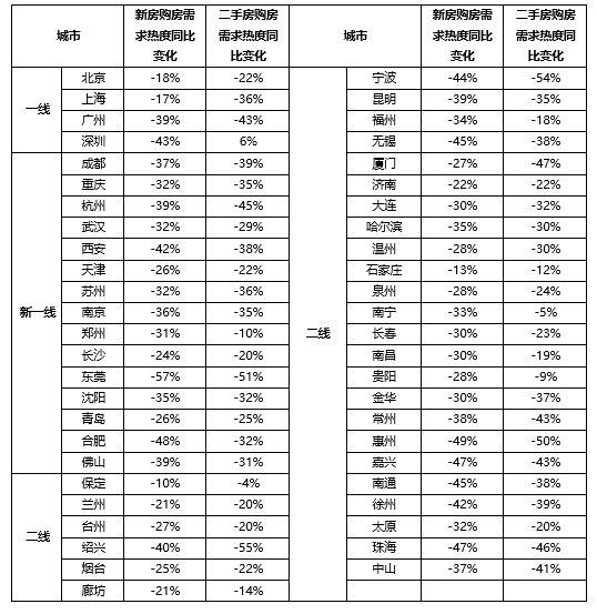 三、附表:各城市购房需求热度热度对比表