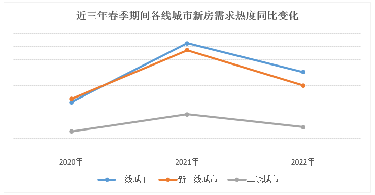 据 58 安居客房产研究院统计数据显示,2022 年春节期间新房市场购房需求热度同比 2021 年春季下降在 31%,其中一线城市下降 27%,新一线城市下降 35%,二线城市下降 34%。