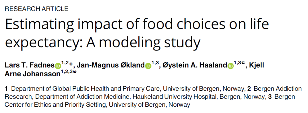 2022 年 2 月 8 日,挪威卑尔根大学的研究人员在 PLOS Medicine 期刊发表了题为:Estimating impact of food choices on life expectancy: A modeling study 的研究论文。