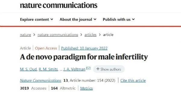 原始出处:Oud, M.S., Smits, R.M., Smith, H.E. et al. A de novo paradigm for male infertility. Nat Commun 13, 154 (2022). doi:10.1038/s41467-021-27132-8