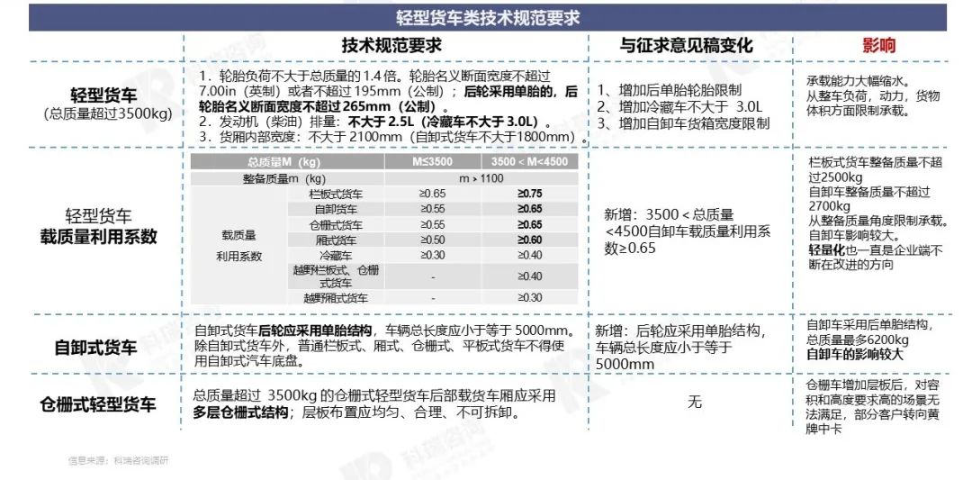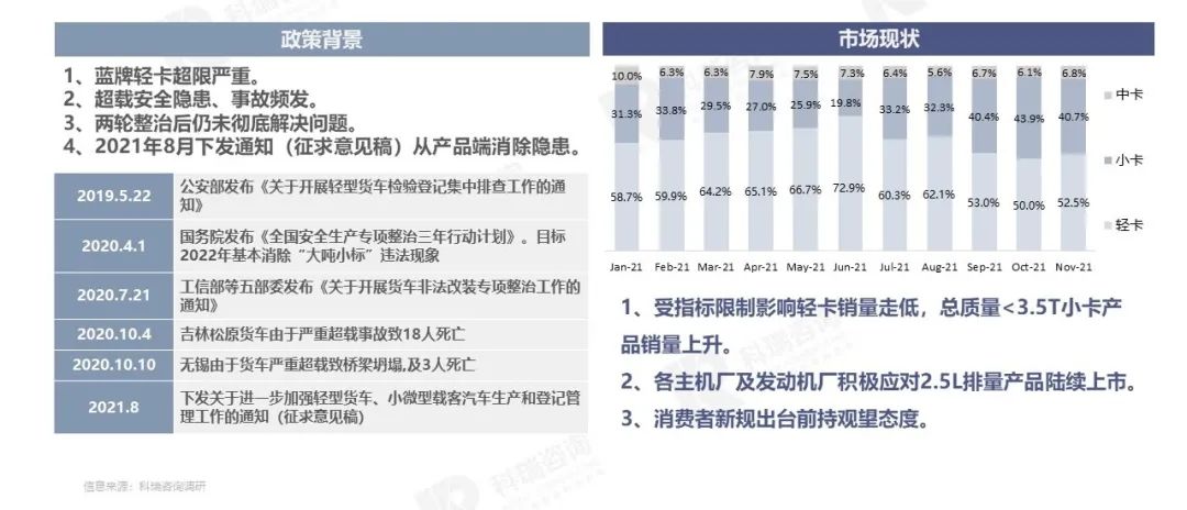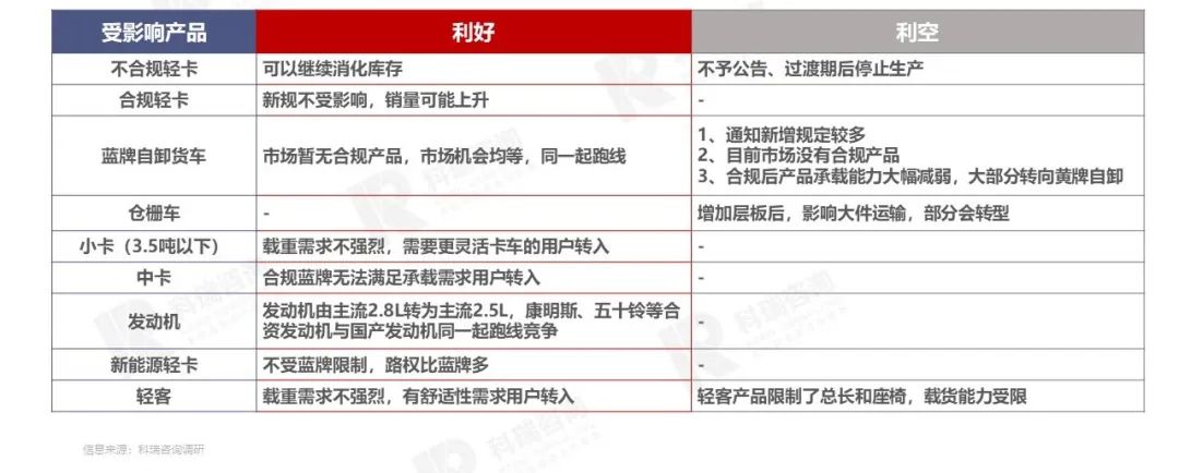 - 受需求影响,将有部分蓝牌载货车转向黄牌中卡、蓝牌小卡、新能源轻卡和轻客,产品回归合规均衡发展。