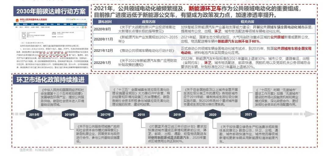 - 在碳中和大背景下,叠加环卫怠速工作的特殊性以及强示范效应,新能源环卫车的推广逻辑更加稳固,政策支撑明确走强。