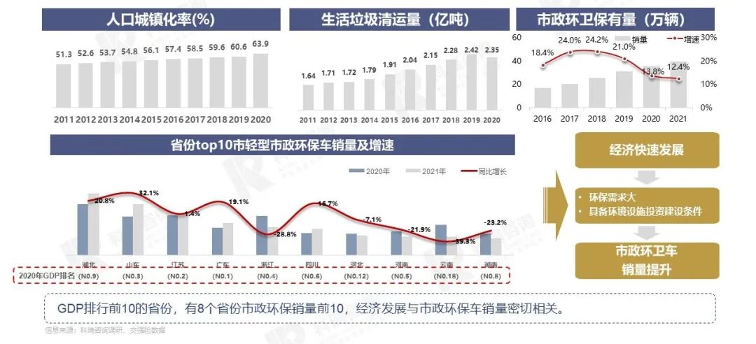 - 2020年我国城镇化率达到63.879%,受城镇化进程加快、政府环卫投入力度加大、环卫机械化率提高以及国民环卫意识增强等多方面因素的综合影响,我国环卫车需求,特别是新能源环卫车需求,逐年升高。