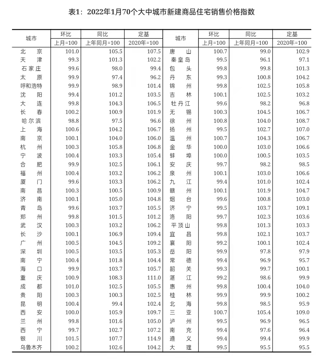 - 国家统计局:2022年11月份70个大中城市商品住宅销售价格变动情况