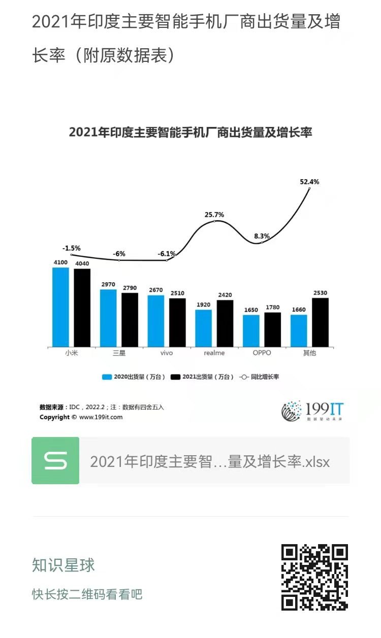 2021年印度主要智能手机厂商出货量及增长率(附原数据表) ​​​​