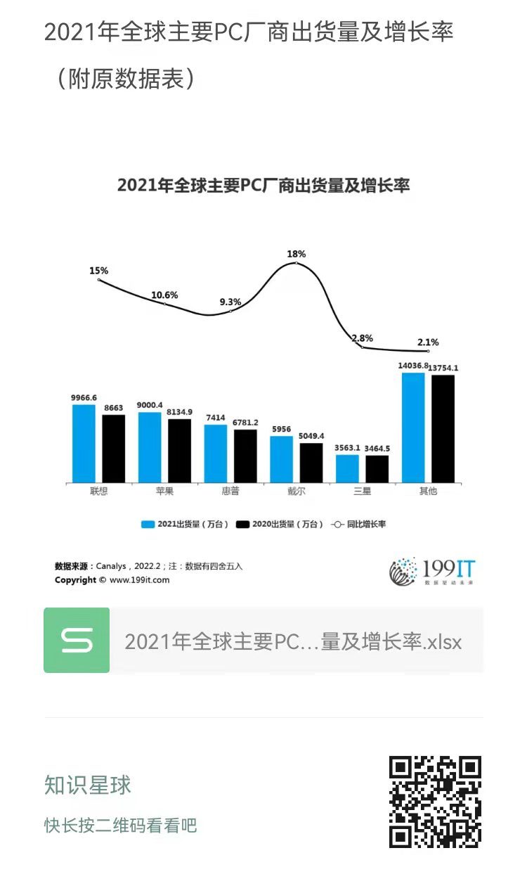 2021年全球主要PC厂商出货量及增长率(附原数据表) ​​​​
