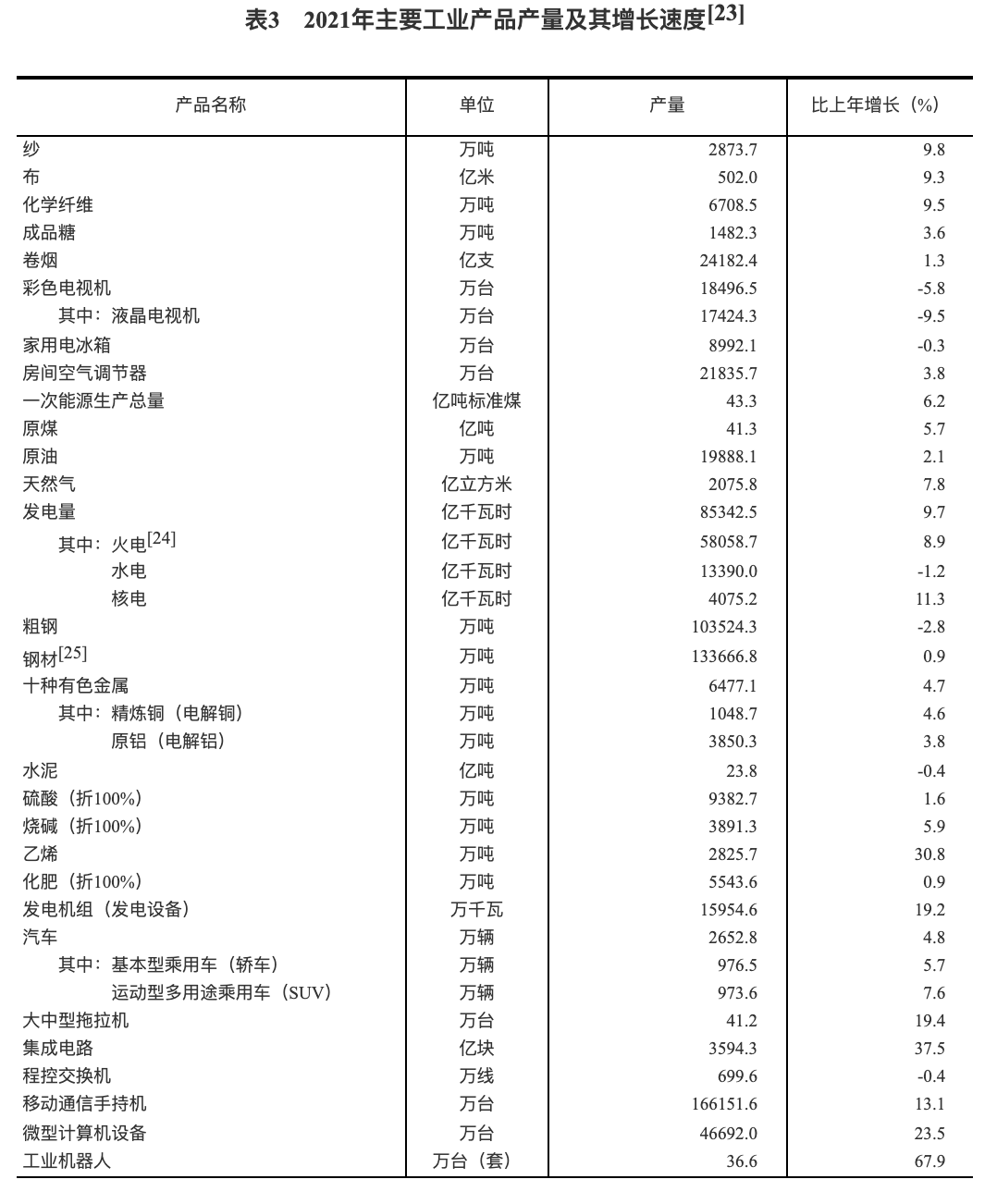 [23]2020 年部分产品产量数据进行了核实调整,2021 年产量增速按可比口径计算。