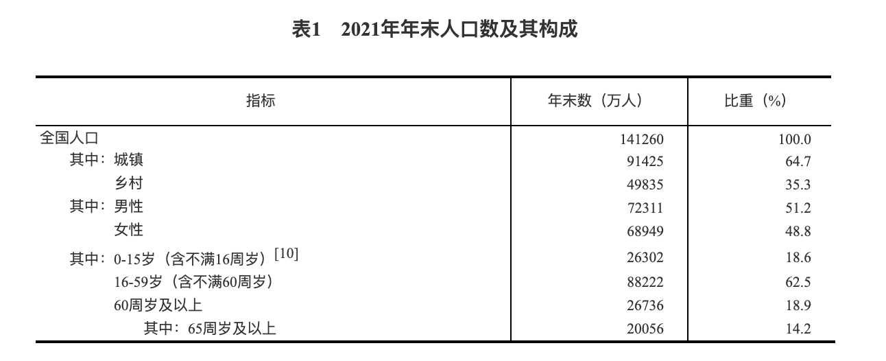 [10]2021 年年末,0-14 岁(含不满15 周岁)人口为24678 万人,15-59 岁(含不满60 周岁)人口为89846 万人。
