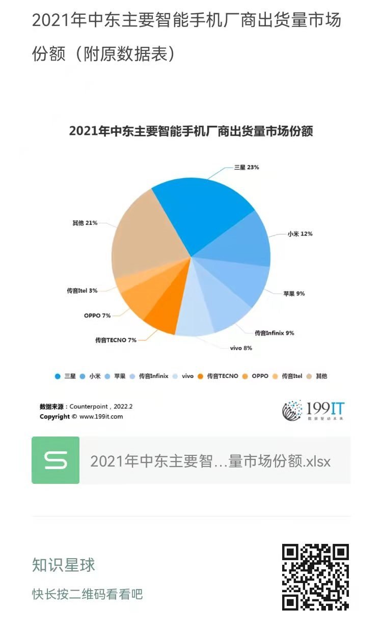 2021年中东主要智能手机厂商出货量市场份额(附原数据表) ​​​​