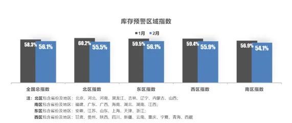 从区域指数情况看:2 月全国总指数为 56.1%,北区指数为 55.2%,东区指数为 56.1%,西区指数为 55.9%,南区指数为 54.1%。
