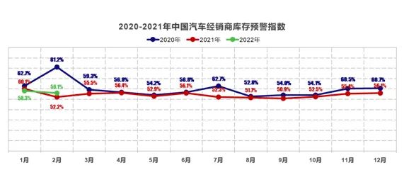 2022 年 2 月 28 日,中国汽车流通协会发布的最新一期 “中国汽车经销商库存预警指数调查”VIA(Vehicle Inventory Alert Index)显示,2022 年 2 月中国汽车经销商库存预警指数为 56.1%,同比上升 3.9 个百分点,环比下降 2.2 个百分点,库存预警指数位于荣枯线之上。