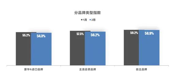 从分品牌类型指数看:2 月进口 & 豪华品牌、主流合资品牌、自主品牌指数环比小幅下降。
