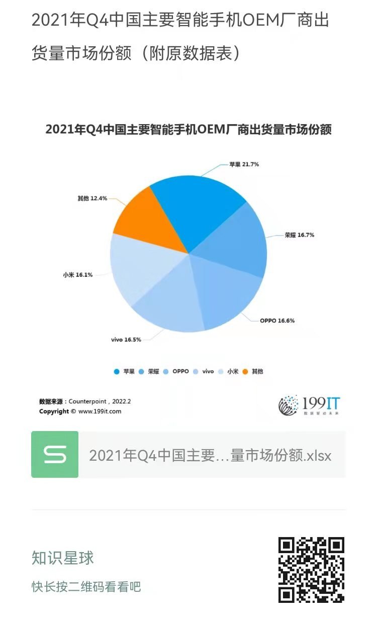 - 2021年Q4中国主要智能手机OEM厂商出货量市场份额(附原数据表)