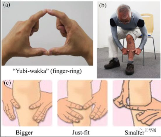 要检查自己有没有可能患肌少症也很简单,男性小腿围<34 厘米,女性<33 厘米,也可以用双手的食指和拇指环绕围住非优势小腿最粗的部位,如果测量到的小腿刚好合适或小于 “指环”,患肌少症的风险就会增加。