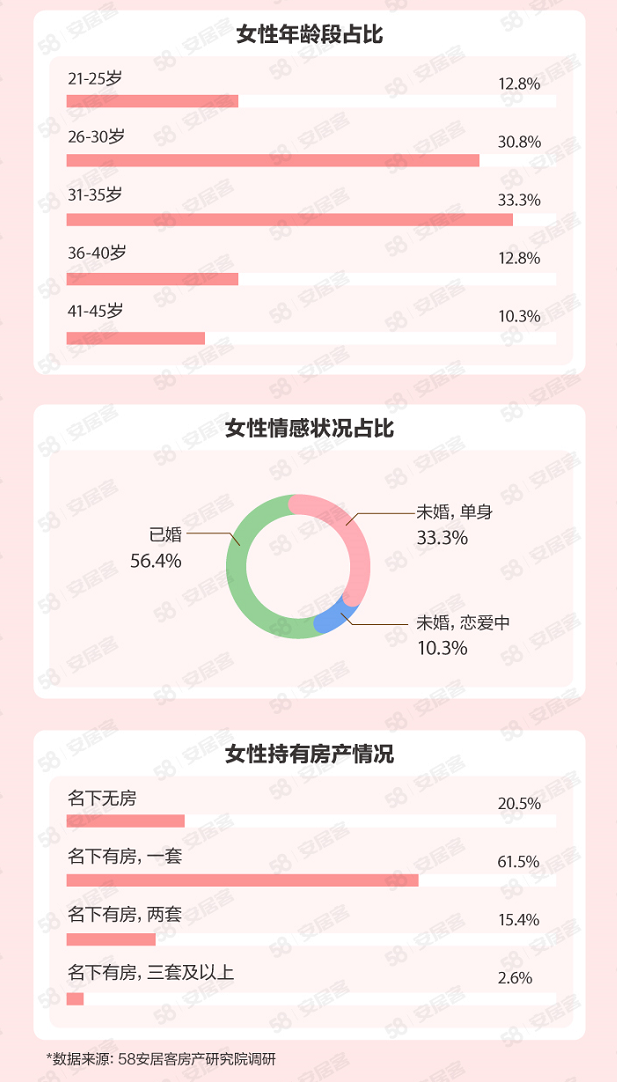 作为国内领先的房产信息及交易服务平台,58 同城、安居客希望通过对女性置业群体的调研,客观呈现女性置业的特点和趋势,同时也将通过产品和服务升级,满足更多女性的置业需求,助力她们实现自由安居的理想生活。