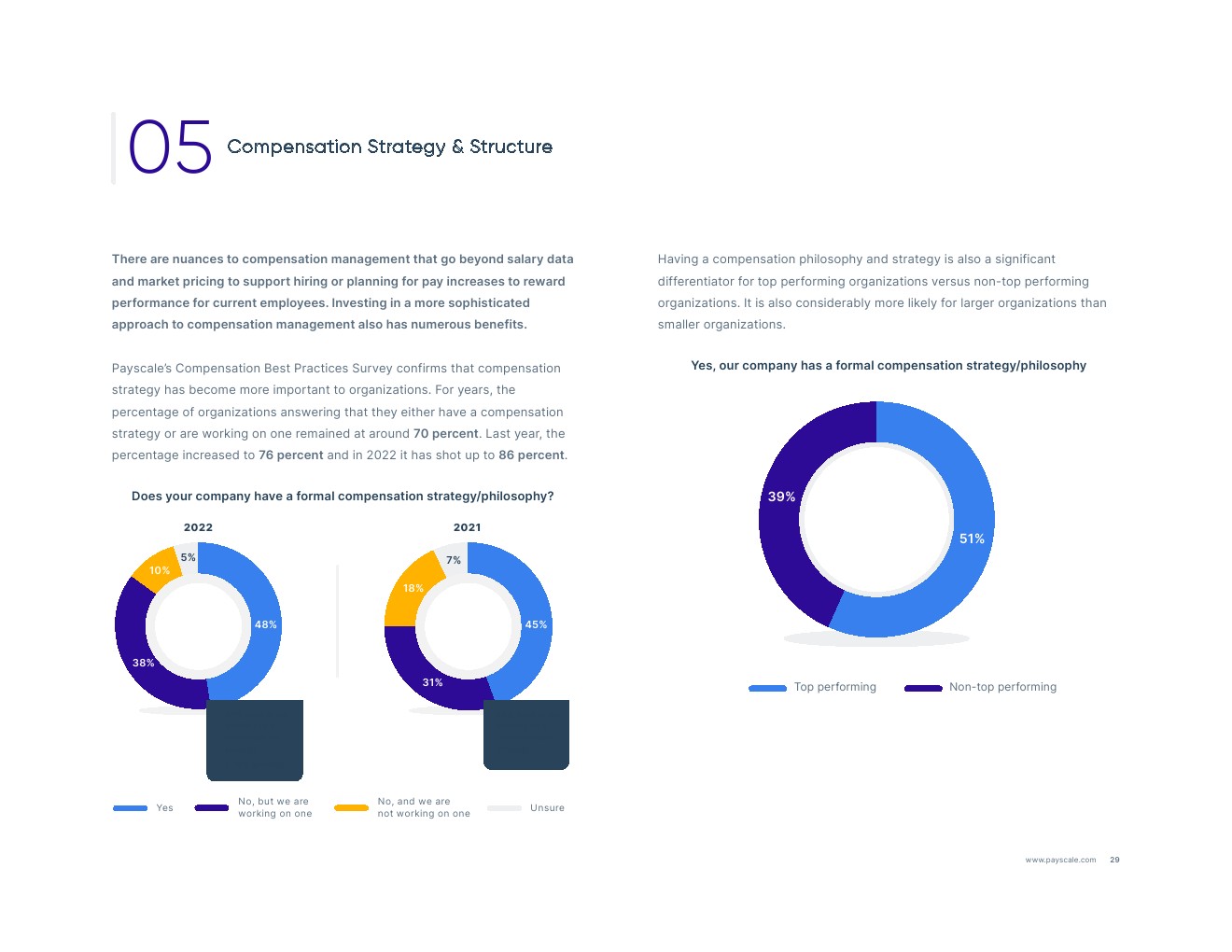 更成熟的薪酬管理方法是这个等式的关键部分。2022年,有薪酬战略或正在制定薪酬战略的企业比例增长至86%,比去年高出10个百分点,比前几年高出16%。