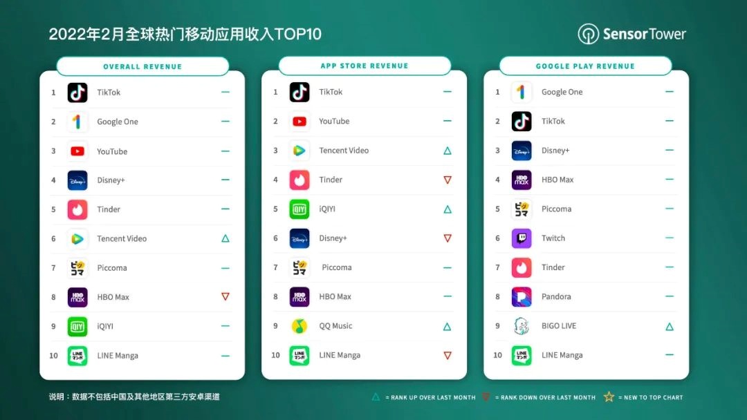 据悉,Sensor Tower的收入预估不包括应用内广告,或者网约车,订餐,网购等通过第三方支付渠道产生的收入;税收和退款不在预估数据中体现。数据也不包括中国和其他地区第三方Android市场。