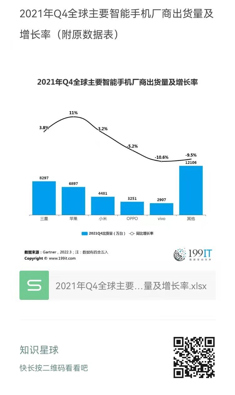 - 2021年Q3全球主要智能手机厂商出货量市场份额(附原数据表)