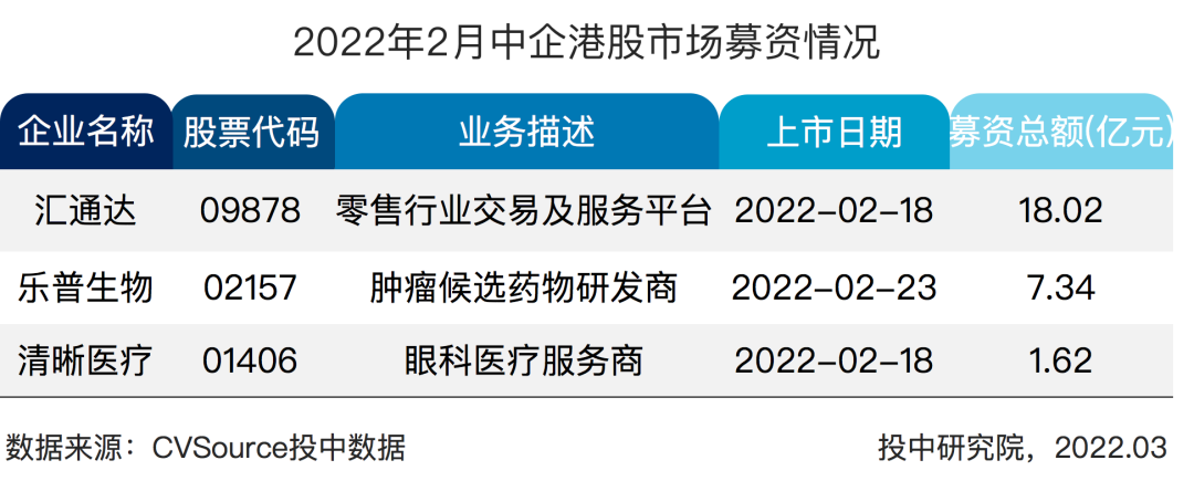 表 3 2022 年 2 月中企港股市场募资情况