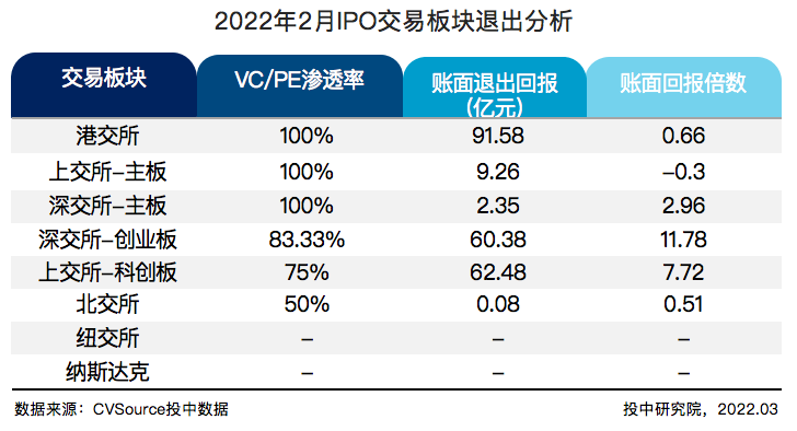 表 4 2022 年 2 月 IPO 交易板块退出分析