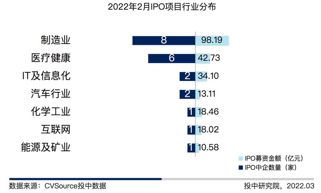 图 7 2022 年 2 月 IPO 项目行业分布