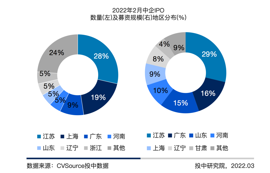 图 8 2022 年 2 月中企 IPO 数量及募资规模地区分布