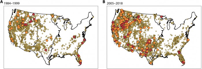不过,也许最令人震惊的是,研究人员发现火灾正在蔓延到美国那些过去没有遭受过这种灾难的地方。