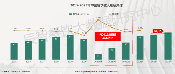 1、2021年中国餐饮收入规模有望回升至4.5万亿元