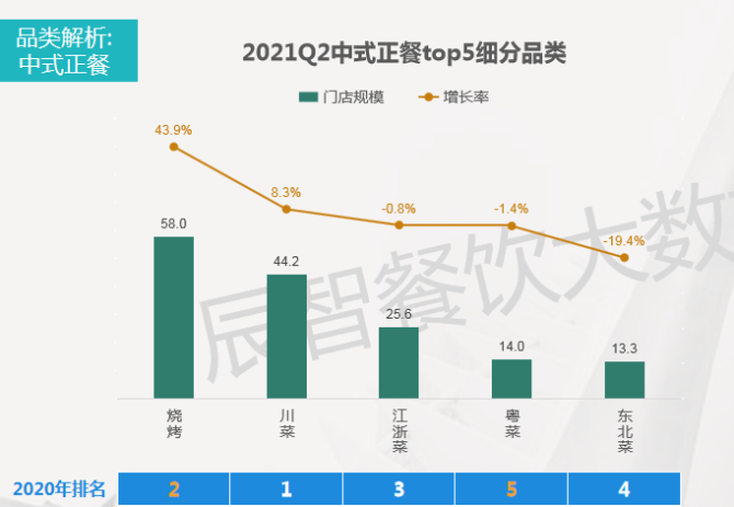 2020年的疫情导致中式正餐品类门店数量有一定幅度的下滑,2021年门店数量有所恢复,但仍未达到疫情前水平。