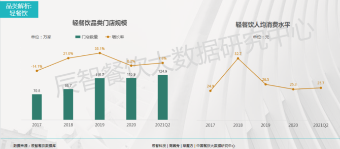 轻餐饮总体门店规模增长率喜人,门店规模近几年呈明显增长趋势,疫情期间门店增长率有所下降。