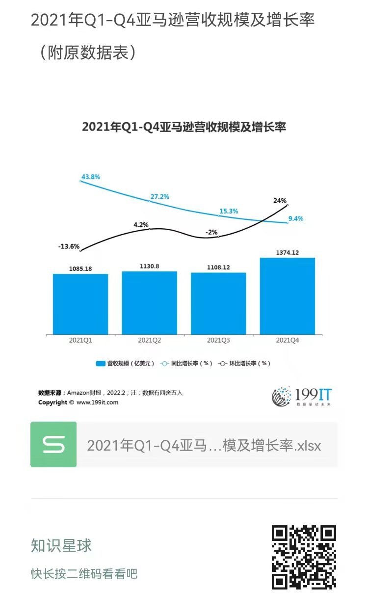- 2021年Q1-2022年Q1亚马逊营收规模及增长率(附原数据表)